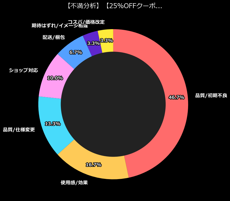 さて、ここからは楽しい「データ分析」の時間です。どす恋まん花が収集した不満カテゴリの内訳を見てみると、ある一つの異常事態が浮かび上がってきます。