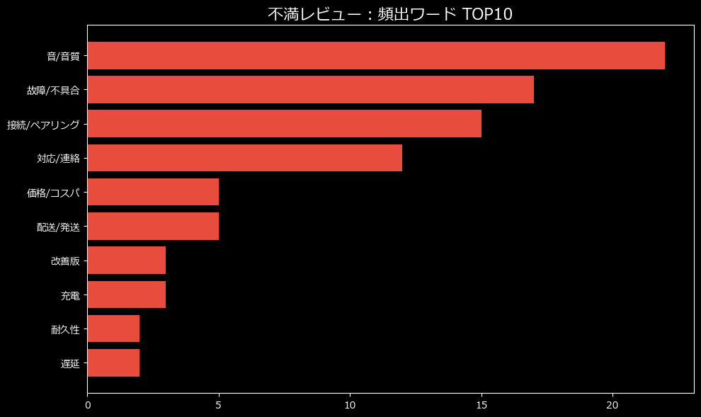 最大の不満要因、それは「品質/初期不良」です。14件。これは不満レビュー全体の半数近くを占めています。つまり、この商品を手に入れるということは、「まともに動く個体が届くかどうか」という闇のルーレットに強制参加させられることを意味します。