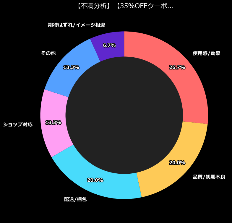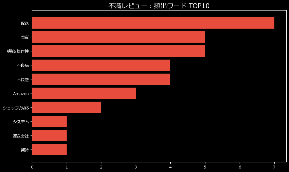 最大の不満カテゴリは「使用感/効果」。これ、ガジェットにとっては致命的よね。「買ったけど、思ってたのと違う」「使い勝手が悪すぎる」という、根本的な部分でユーザーが膝を折っているのよ。