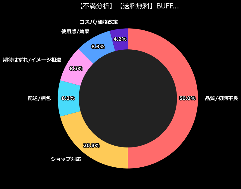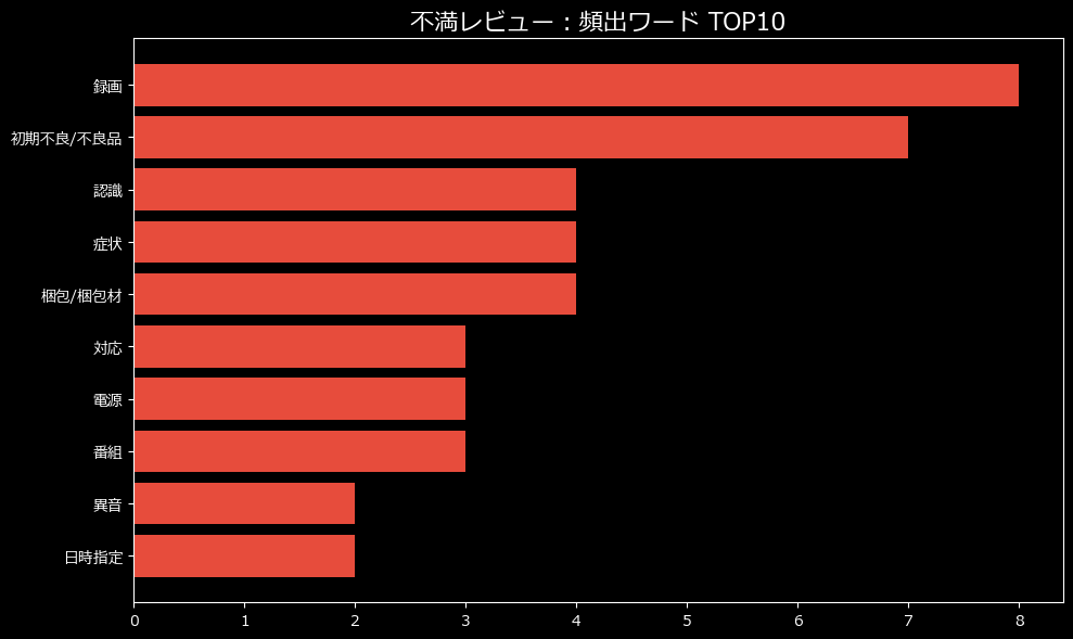 分析データによれば、最大の不満カテゴリは圧倒的に「品質/初期不良」。12件ものユーザーが、手元に届いた瞬間に「絶望」を味わっているの。