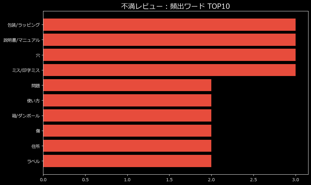 不満の傾向を分析すると、面白いことがわかります。製品そのものの機能に対する不満よりも、「手元に届くまでのプロセス」や「使い始めるまでのハードル」に怒りの矛先が向いているのです。