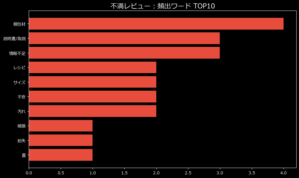 最大の不満カテゴリは、商品そのものの性能ではなく、なんと「配送/梱包」。