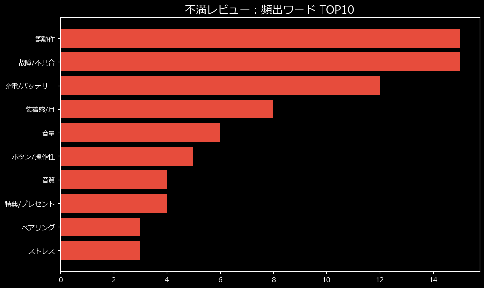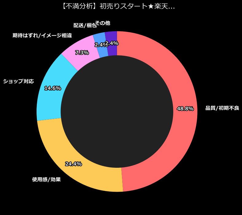 最も多い不満は、圧倒的に「品質および初期不良」よ。なんと不満全体の過半数を占めているわ。これは、商品が手元に届いた瞬間から、すでに「ジャンク品」としてのカウントダウンが始まっていることを意味しているの。