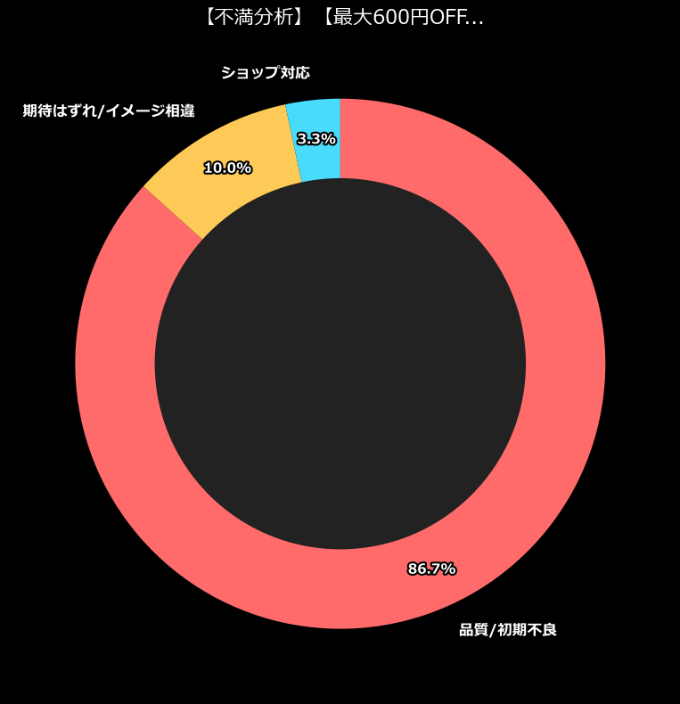 不満のカテゴリを分析すると、驚くべき事実が浮かび上がります。全不満件数のうち、なんと86%以上が「品質/初期不良」に集中しているのです。これは、設計ミスというよりは、製造現場でのクオリティコントロールが完全に崩壊している、あるいは「アタリ・ハズレの差が天と地ほどある」ことを示唆しています。
