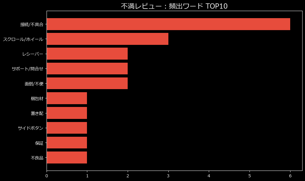 頻出単語ランキングを眺めると、「接続/不具合」という言葉が呪いのように繰り返されています。これはもう、単なる初期不良の枠を超えた「製品のアイデンティティ」と言っても過言ではありません。