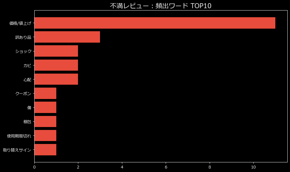 さあ、本題です。頻出単語ランキングでぶっちぎりの1位(11回)を獲得した「価格/値上げ」。これこそが、この商品を覆う暗雲の正体です。