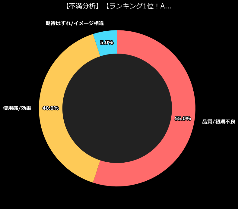 この商品の評価は、一見すると非常に高いです。しかし、不満カテゴリの内訳を覗いてみると、そこには「地獄の釜の蓋」が開いたような光景が広がっています。