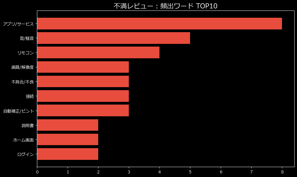 最大の不満カテゴリは、ダントツで「品質/初期不良」です。11件。これは単なる「運が悪かった」で済まされる数字ではありません。