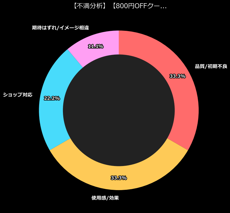 不満の最大のカテゴリーは、圧倒的に「品質/初期不良」「使用感/効果」。要するに、「まともに動かない」か「使ってみたらイマイチだった」という、ガジェットとしては致命的なツートップが君臨しています。