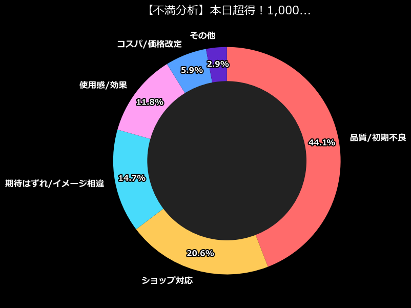 さて、ここからは「どす恋まん花」の真骨頂、データの深掘りです。分析データを見ると、最大の不満カテゴリは「品質/初期不良」で、不満全体の半分以上を占めています。