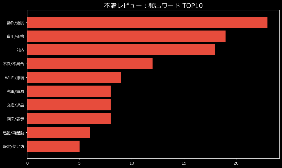 今回抽出した不満レビュー20件のうち、最も多かったカテゴリは……案の定と申しましょうか、「品質/初期不良」でございました。