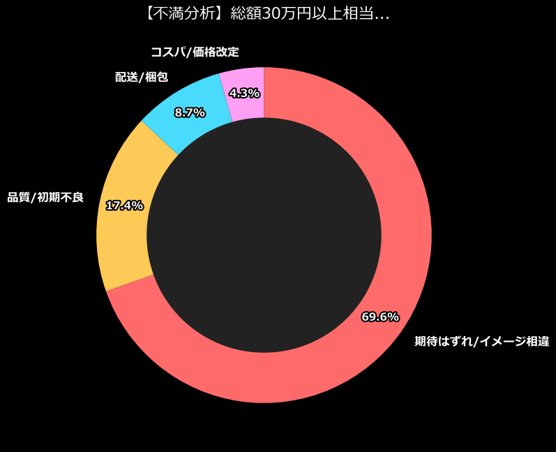 分析データによれば、不満のカテゴリーで圧倒的1位(16件)を記録しているのが「期待はずれ/イメージ相違」です。これは、商品ページに踊る「Switch」や「Dyson」という文字に目を奪われ、自分の手元に届く箱の中身も同等の輝きを放っていると誤認してしまった結果と言えるでしょう。